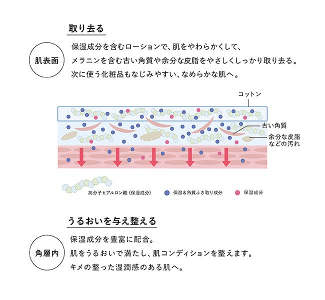 ・保湿成分を含むローションで「うるおいを与え整える&取り去る」というダブルケアができる、