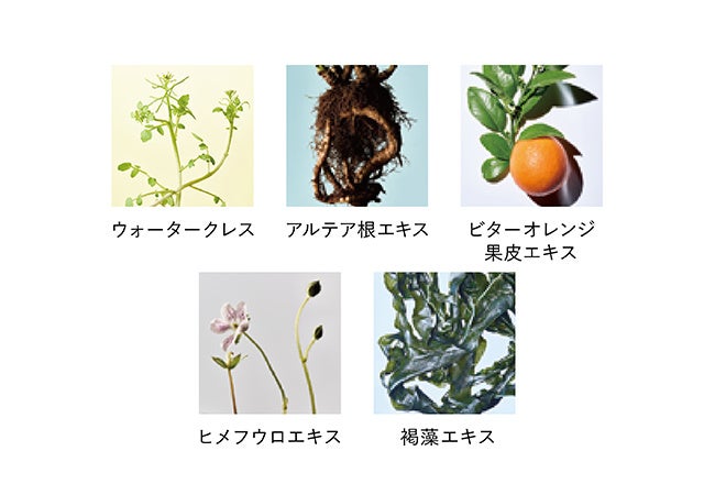 ■その他の保湿成分:高分子ヒアルロン酸(ヒアルロン酸Na)、アクアグルコシド(エチルグルコシド)、ウォータークレス(オランダガラシエキス)、アルテア根エキス、ビターオレンジ果皮エキス、ヒメフウロエキス、褐藻エキス(ヒバマタエキス)